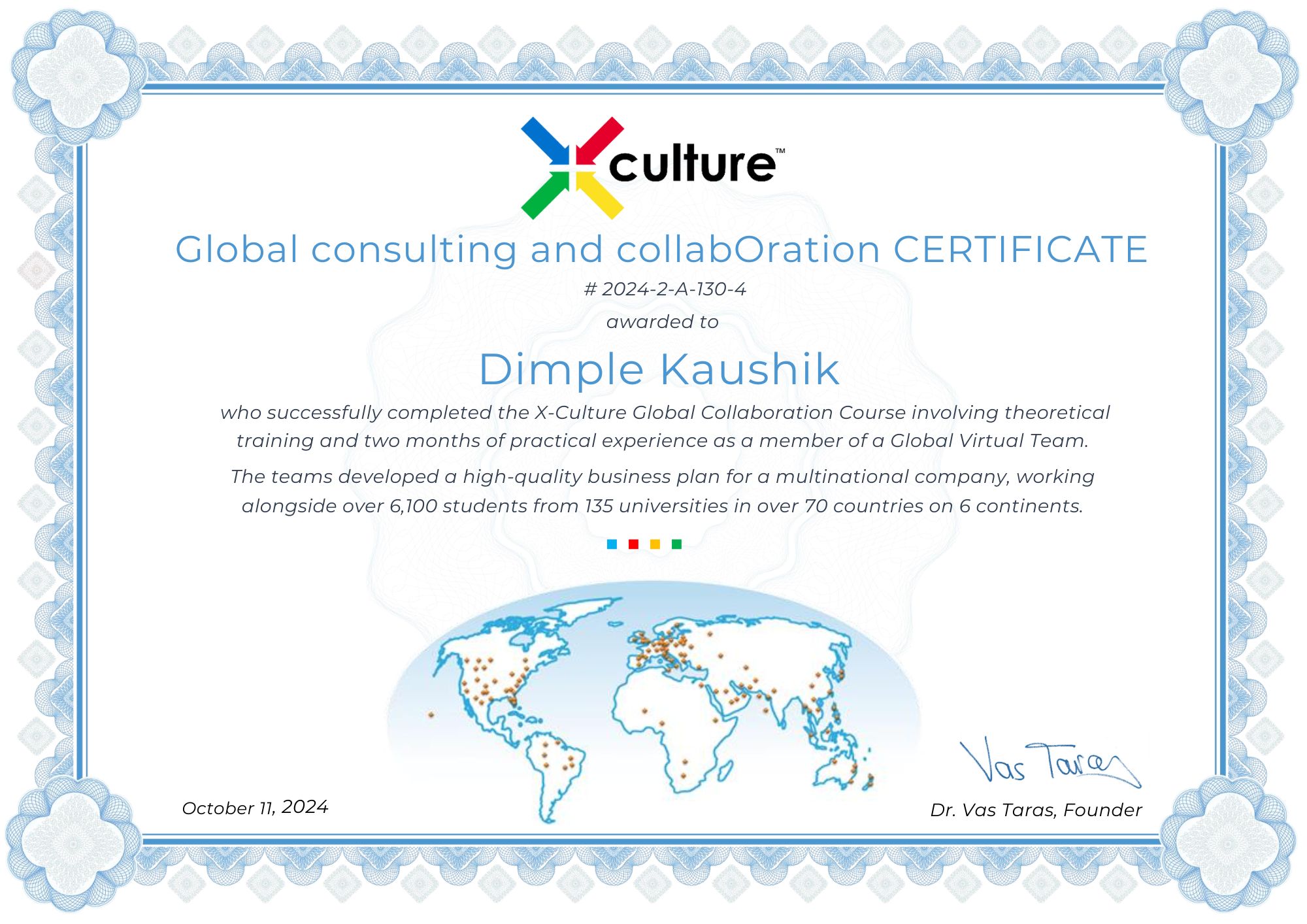Faculty mentors guide students throughout the program, ensuring academic rigor and continuous learning. Successful completion of the X-Culture program adds substantial value to students’ academic profiles, preparing them for global careers and multinational work environments.