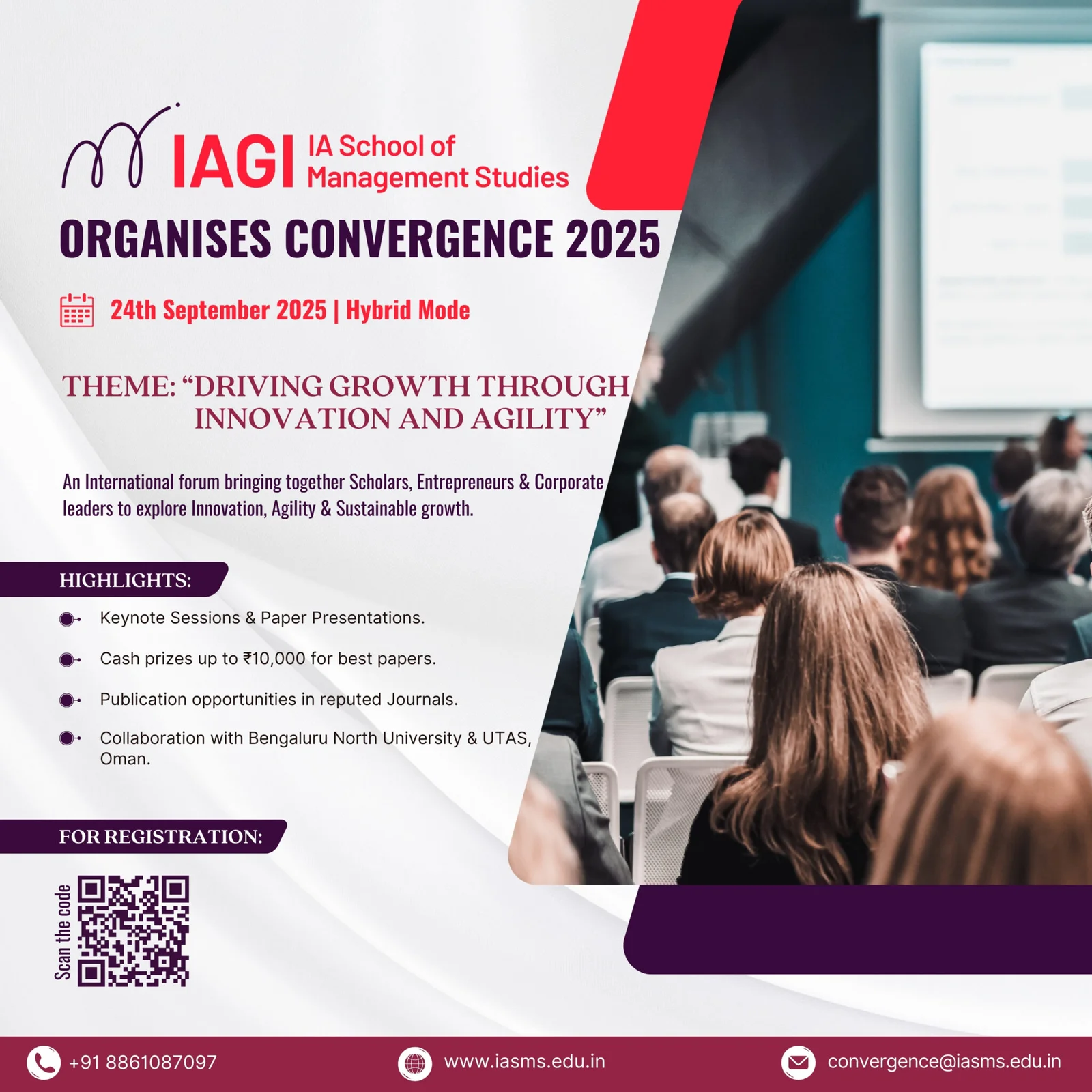 IA School of Management Studies (IASMS), consistently ranked among the Top 100 B-Schools in India and Top 20 in South India, will be hosting its flagship International Conference, Convergence 2025 on 24th September 2025 in hybrid mode.